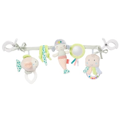 Fehn ® Barnevognkjede er et leketøyskjede med to klemmer, som raskt kan festes til barnevogner, barneseter, barnesenger eller lekebuer. Lekekjeden gir spennende læringsglede hjemme og på farten!