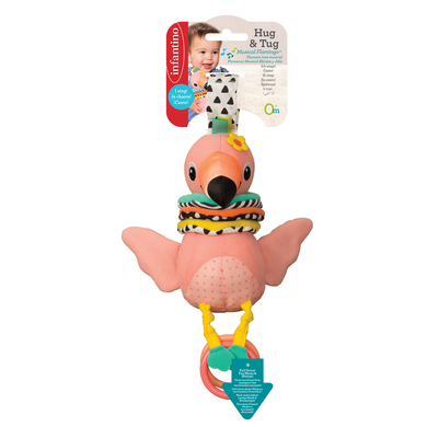 Dette er et vakkert anheng i flamingodesign. Barneøyne vil skinne med den lille flamingoen. De ulike overflatene stimulerer persepsjonen og gir mye moro. Anhenget kan festes til barnevogn, lekegrind eller barneseng og er alltid tilgjengelig for bruk.