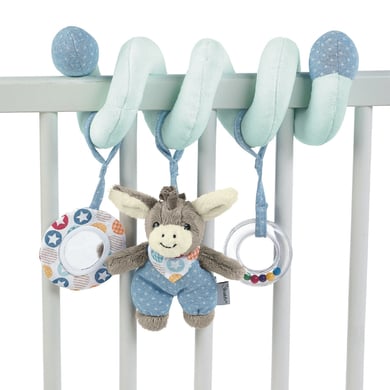 Spiral e er det perfekte leketøyet for babyen din. Med dette leketøyet har babyen din alt innen rekkevidde. Eselet Emmi består av supermyk fleece, myk velour og jersey. Takket være den praktiske spiralfunksjonen kan leken festes på mange forskjellige måter.